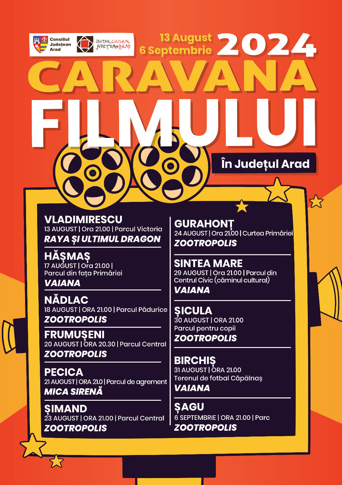Consiliul Județean Arad, prin Centrul Cultural Județean Arad, în parteneriat cu primăriile din județ, organizează o nouă ediție a 𝐂𝐚𝐫𝐚𝐯𝐚𝐧𝐞𝐢 𝐟𝐢𝐥𝐦𝐮𝐥𝐮𝐢 𝐢̂𝐧 𝐣𝐮𝐝𝐞𝐭̦𝐮𝐥 𝐀𝐫𝐚𝐝