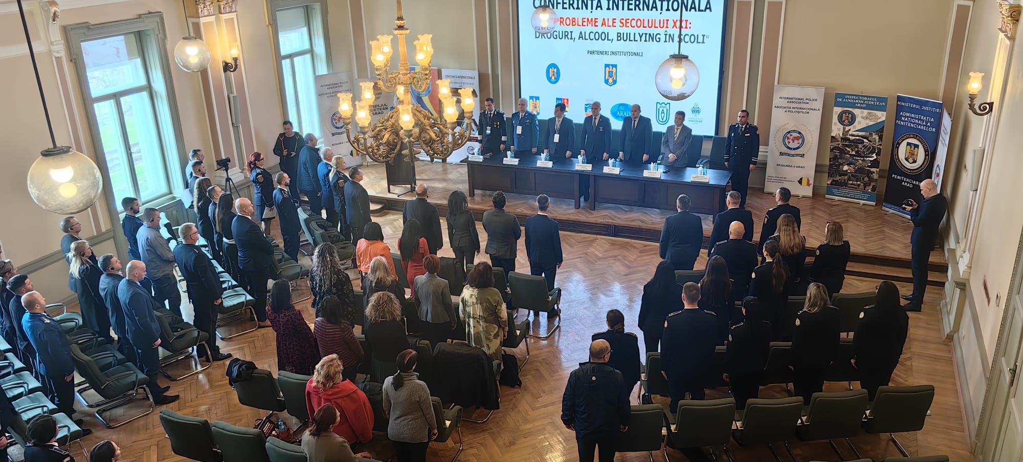 În Sala Marii Uniri a avut loc Conferința internațională cu tema ”Provocările/ problemele secolului XXI” droguri, alcool, violența în școli (bullying-ul), care a reunit lucrători din structuri ale MAI din țară și străinătate și alți profesioniști cu atribuții în domeniu, cadre didactice (în special cele cu responsabilități în cadrul comisiilor de prevenire a violenței în mediul școlar), profesori consilieri școlari, elevii.