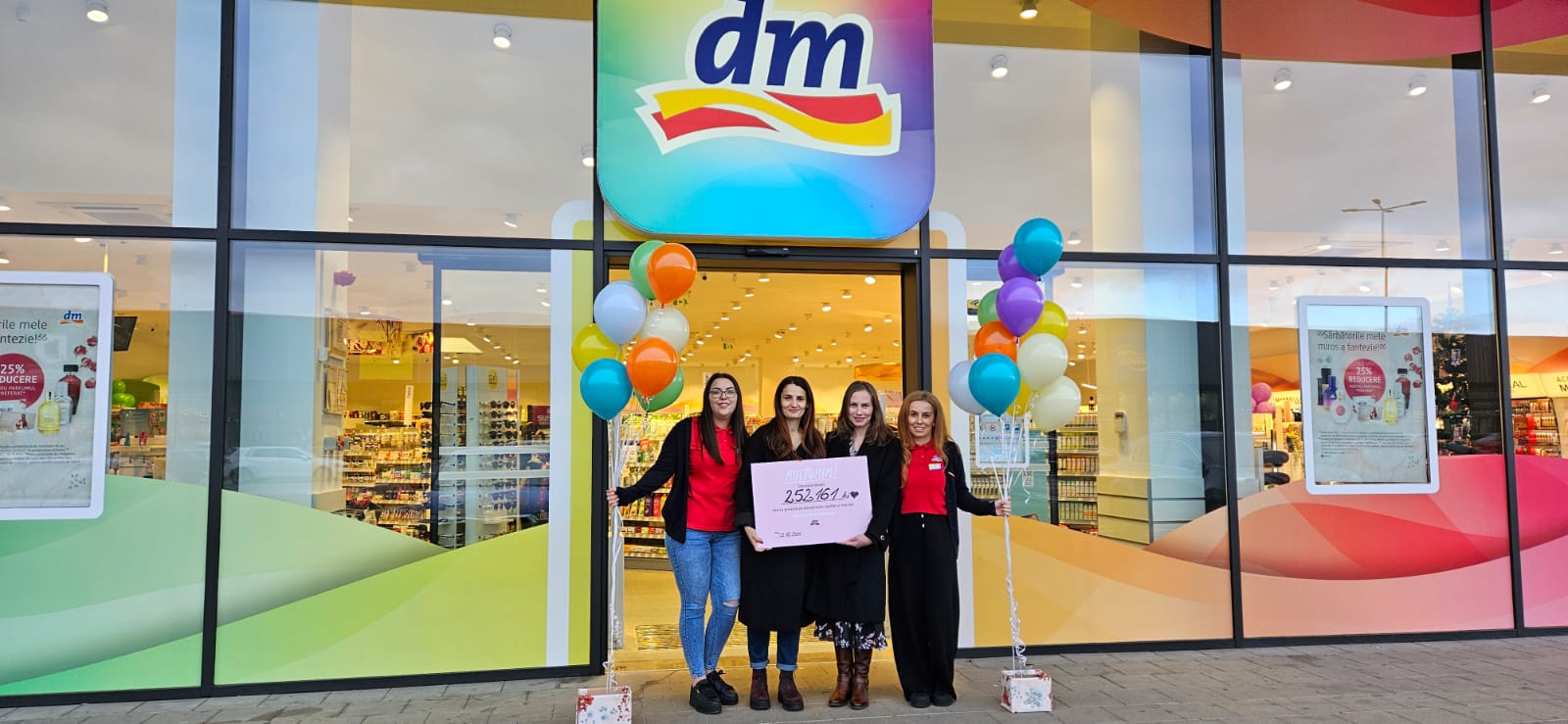 Pe 29 noiembrie, 5% din vânzările din magazinele dm și din online au fost direcționate către SOS Satele Copiilor România, o organizație dedicată susținerii copiilor care au rămas fără sprijinul părinților sau riscă să îl piardă. Datorită generozității clienților, dm a reușit să strângă suma impresionantă de 252.161 delei pentru susținerea integrală a unei case din Satul SOS Cisnădie și a programelor SOS Satele Copiilor. Acești bani vor fi utilizați nu doar pentru a le asigura copiilor un acoperiș deasupra capului, ci și îngrijire, educație și sprijin emoțional.