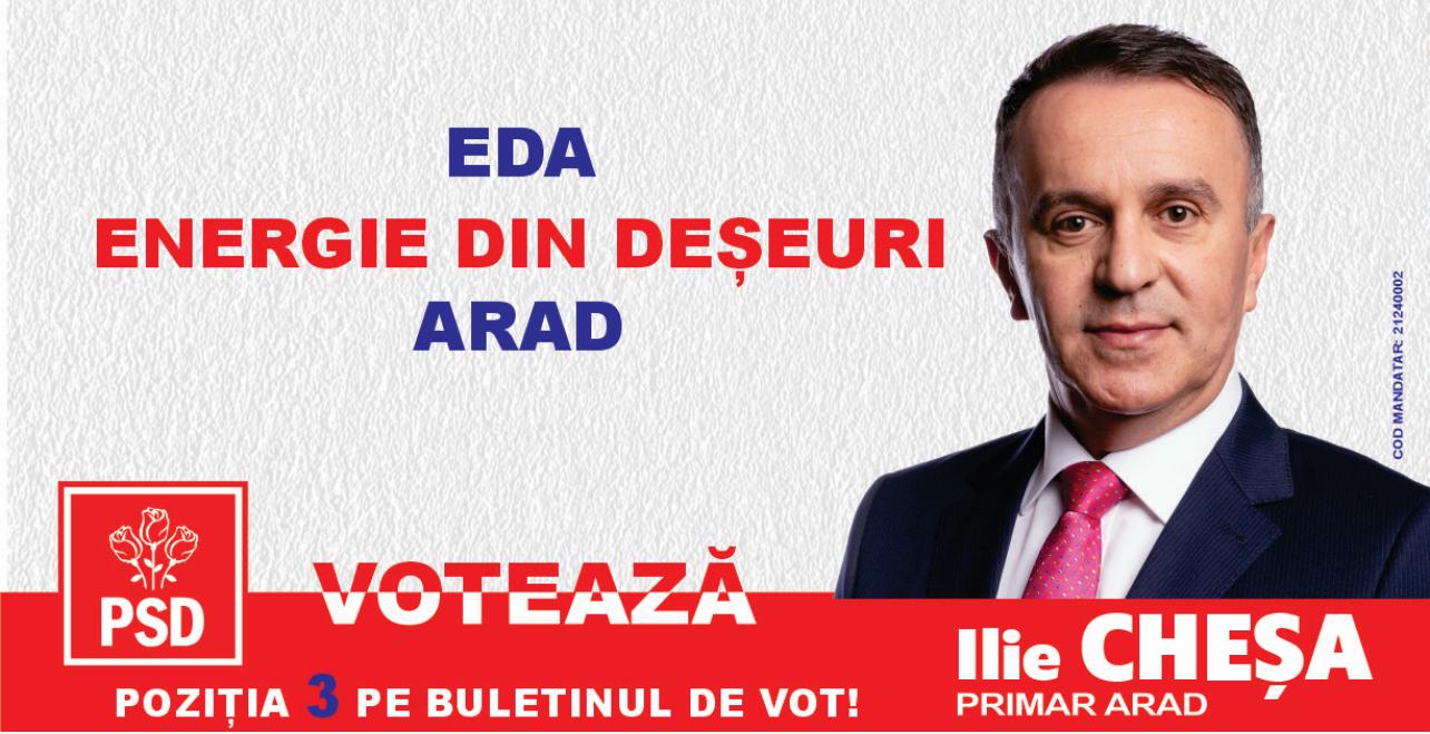 Într-o perioadă în care Uniunea Europeană și, implicit, România, caută soluții pentru a reduce dependența de gazele rusești și, în principal, pentru a reduce facturile cetățenilor la încălzire, electricitate și apă caldă, noi venim cu un proiect prin care vom reuși să producem în municipiul nostru cea mai ieftină gigacalorie din țară. Printre cele 11 priorități ale candidatului PSD la Primăria Aradului, Ilie Cheșa, se numără și realizarea unei centrale în Arad, care să producă energie termică și electrică din deșeuri (EDA).