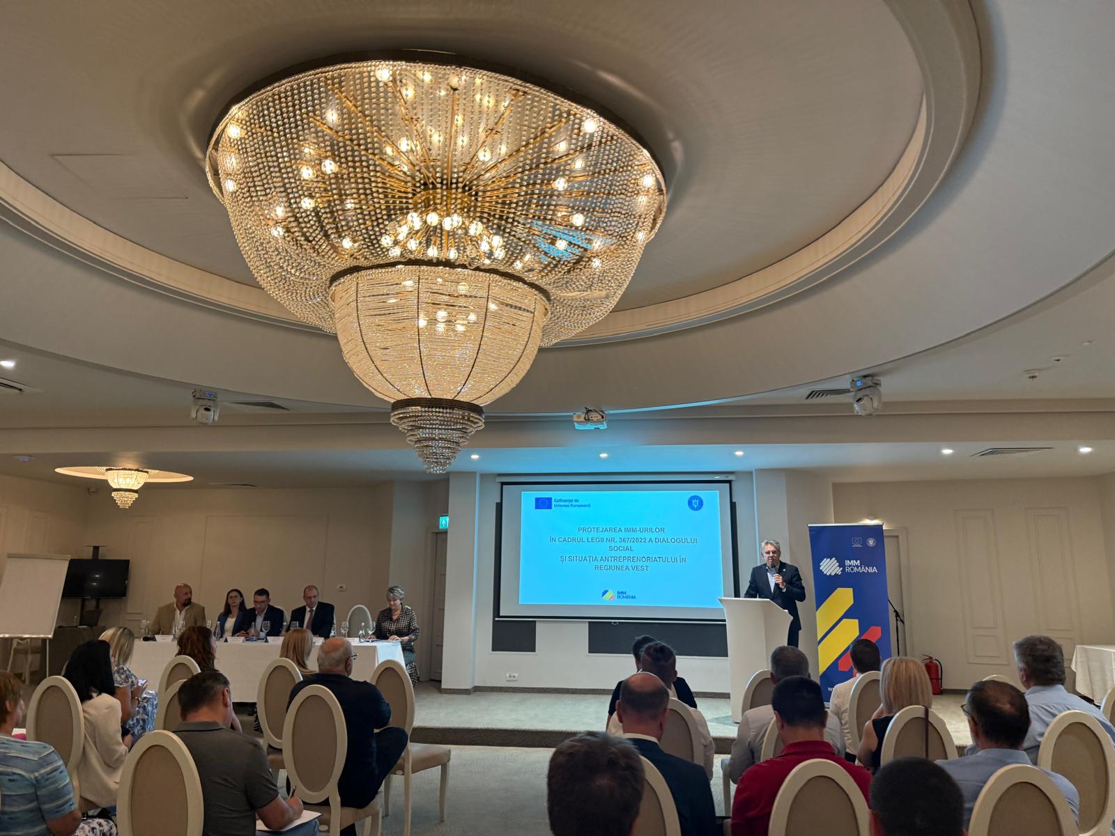 IMM ROMÂNIA a organizat astăzi, 19 iunie 2025, împreună cu IMM Timiș evenimentul din regiunea Vest, sub egida: „IMM ROMÂNIA – Susținerea IMM-urilor prin Dialog Social”.