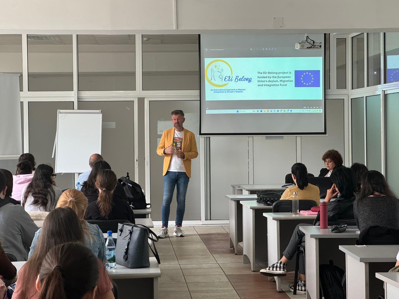 Deschiderea evenimentului a fost marcată de lector univ dr. Andrei Ando, director executiv în cadrul Consiliului Județean Arad, care a prezentat proiectul EUBelong, subliniind obiectivele și strategia Consiliului Județean Arad pentru integrarea imigranților. A urmat lector univ. dr. Flavius Ghender, care a detaliat proiectul pilot „Imigrant în Arad”, axat pe educația inter-culturală și pe înțelegerea fenomenului migrației din perspectiva celor care încearcă să se integreze în comunitate.