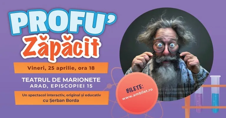 Bilete: https://www.ambilet.ro/bilete/profu-zapacit-teatrul-de-marionete-arad-622232/