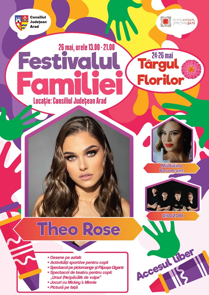 Festivalul Familiei se ca încheia cu un program artistic , susținut de Mădălina Boroneanț, Ribozom și invitata specială 𝐓𝐇𝐄𝐎 𝐑𝐎𝐒𝐄.